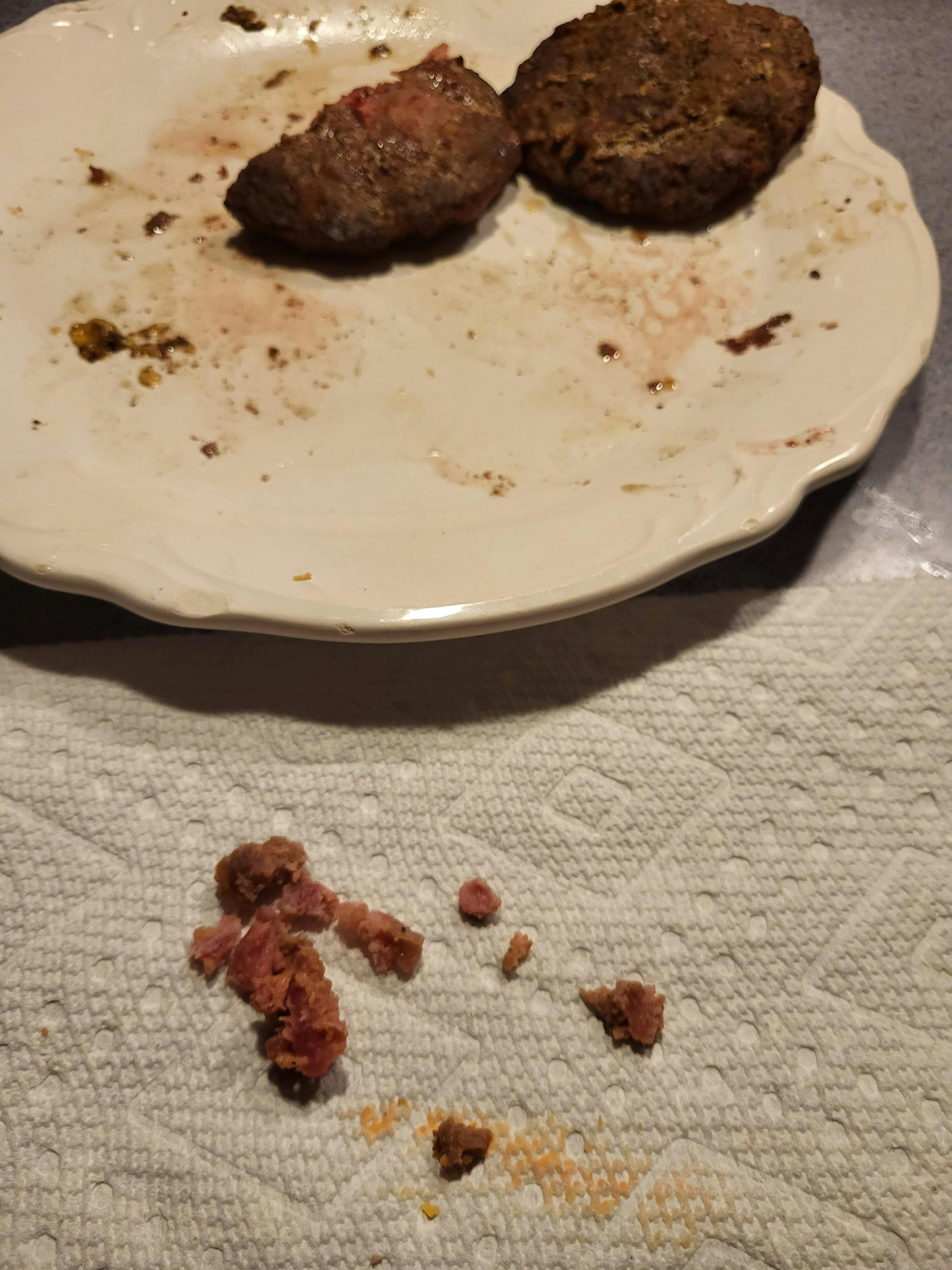 I sent an email in this morning with a picture. I purchased 2packages of 4 Cowboy Burgers. All 8 burgers had a pieces of fat in them that we could not chew, I had discussed this with your team about 2 weeks ago. I have the pieces of fat in the freezer if you want me to send them. I am asking for a refund for the burgers or a replacement (not burgers) of equal value. Your flank steak however was very good!